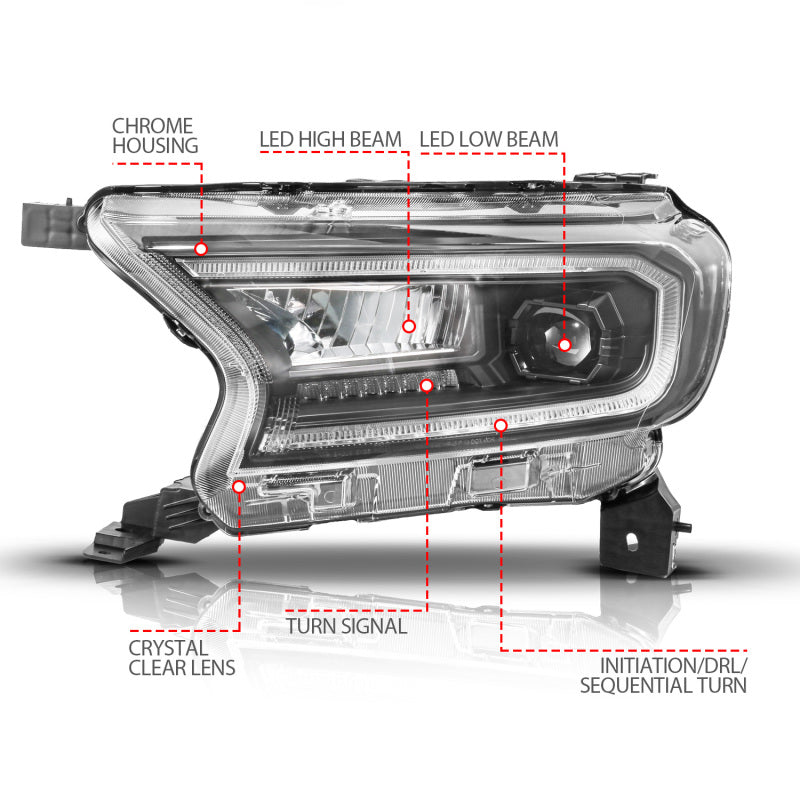 ANZO 19-23 Ford Ranger (Factory Halogen Model) Full LED Proj Headlights Init/DRL/SeqSig Black - Pair